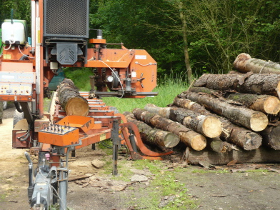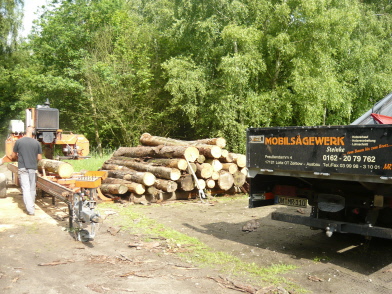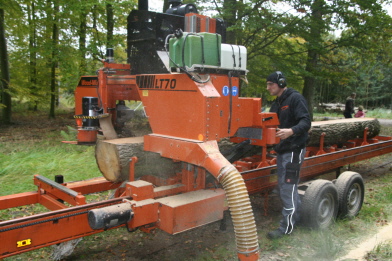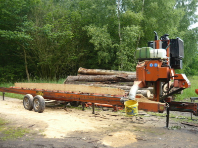 Wir kommen mit unserer mobilen Blockbandsäge zu Ihnen in den Wald oder auf Ihren Hof und schneide vor Ort Ihre gewünschten Maße. (ohne Stromanschluss!)